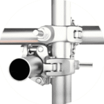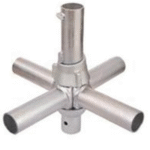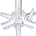 Top cup is circular cup-node point that allows up to 4horizontally connected scaffold ledger blades in a single installation.